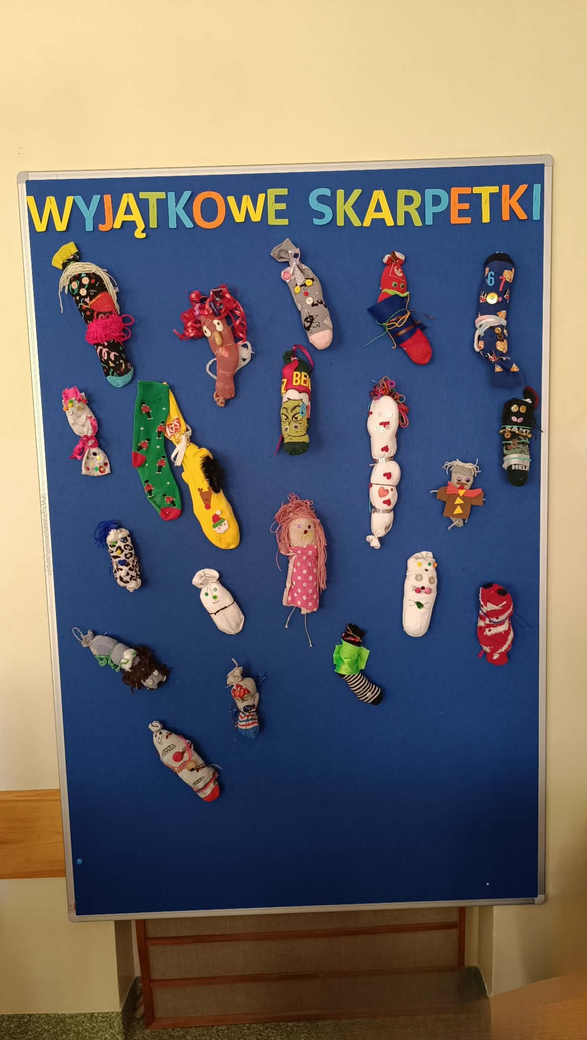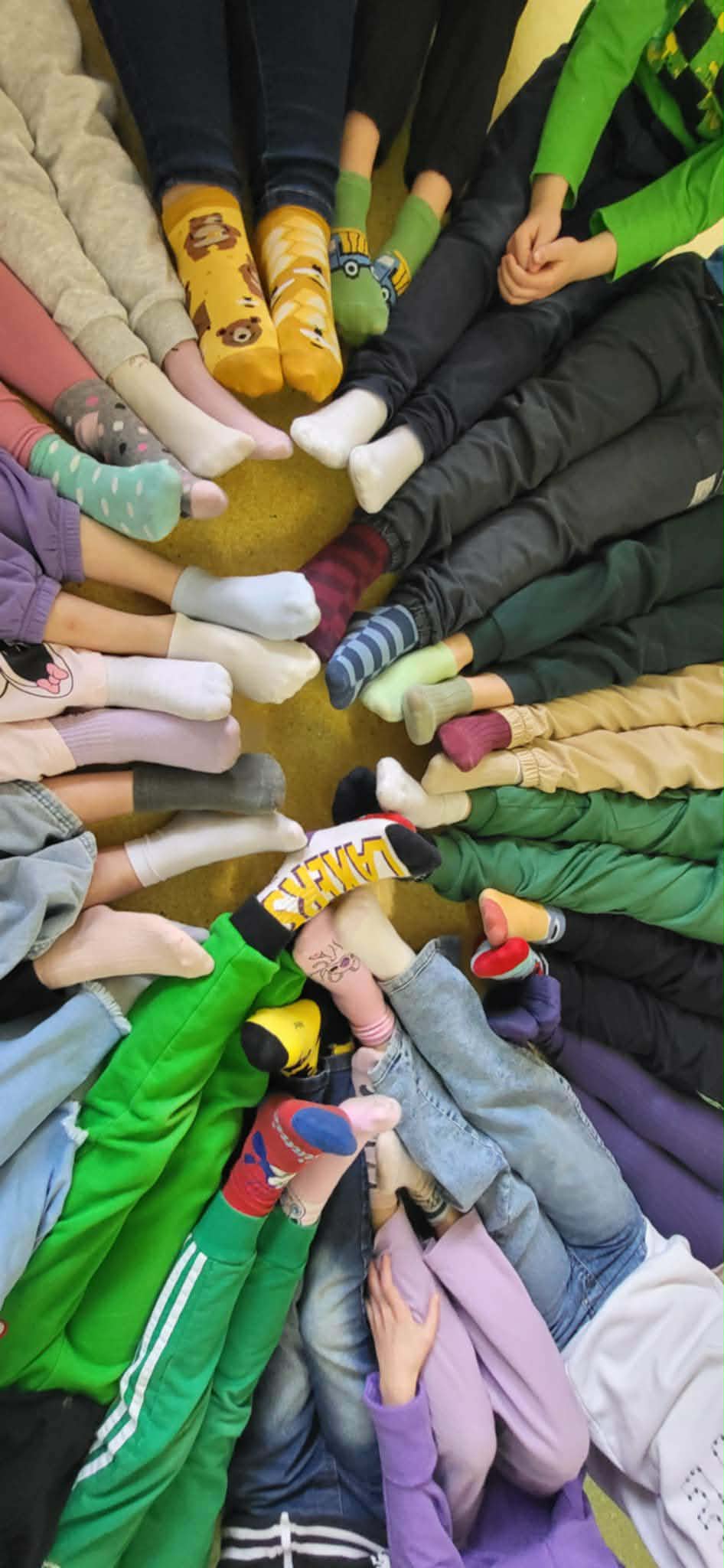 Tego dnia włączyliśmy się również w symboliczne obchody, zakładając dwie różne, kolorowe skarpetki – znak solidarności z osobami z zespołem Downa. Dodatkowo uczniowie wykonali własne, niezwykłe skarpetki, które stały się piękną i kolorową ozdobą naszej klasy.